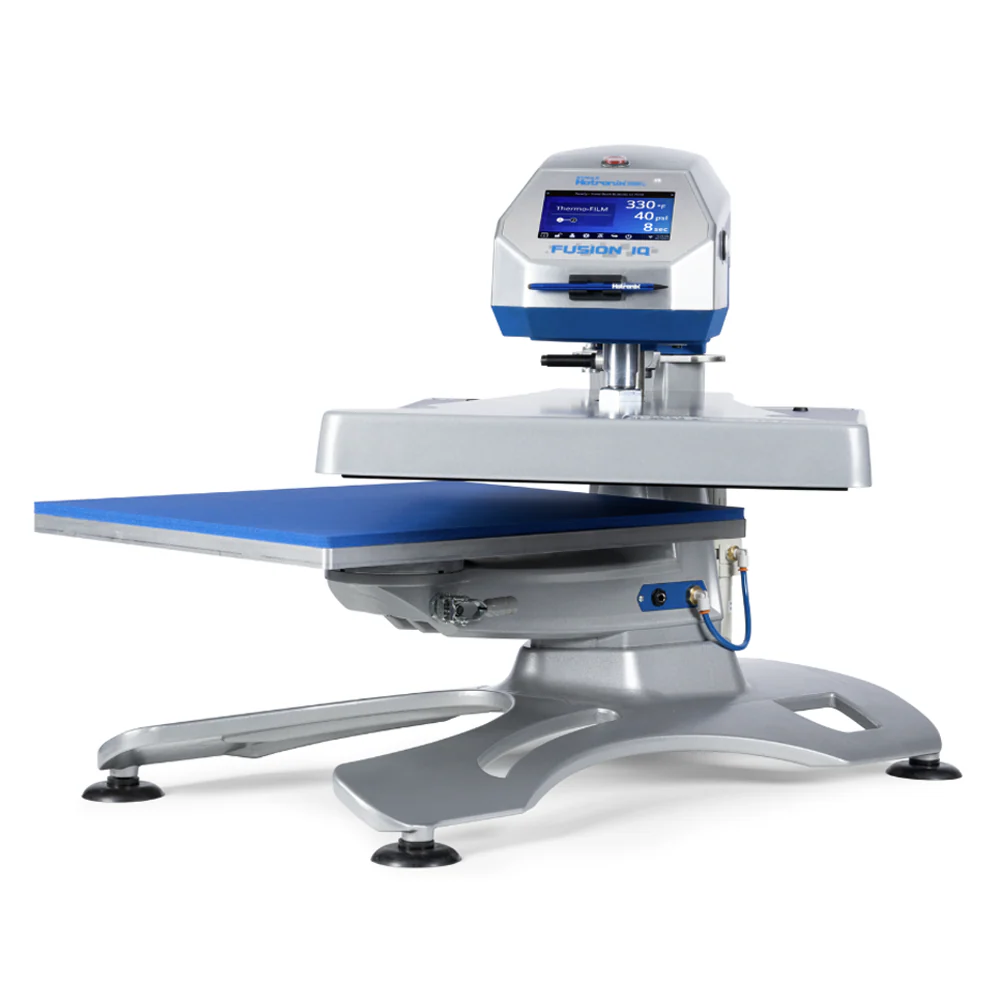 The Hotronix Table Top Air Fusion 16” x 20” Heat Press offers a semi-automatic heat press operation from a device that is small enough to fit on a table. Utilizing an expansive touch screen, the Table Top Air Fusion Heat Press offers all of the benefits of the Air Fusion heat press is a compact model that will fit on your table while providing threadability that eliminates any need for a pad or pillow. While requiring an external compressor, the Table Top Air Fusion supports up to 120 PSI to be used for decorations that require firm and even pressure application